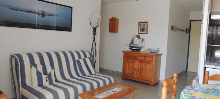 Ebenerdige Wohnung (42 m² im Erdgeschoss)Die Wohnung befindet sich in einer Residenz 600 m vom Strand entfernt und besteht aus: Küchenzeile/Wohnzimmer (mit BZ), Kühlschrank, Ofen, Mikrowelle, Geschirrspüler, Schlafzimmer (Bett 160 ), einer Veranda, privatem, geschlossenem Garten mit Terrasse. Grill, Gartenmöbel, privater Parkplatz.