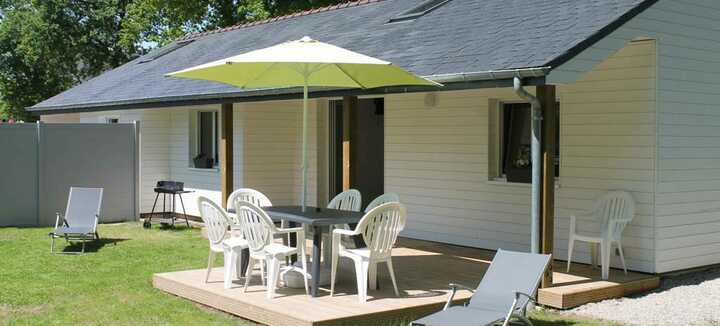 Komfortabler Bungalow von 54 m2 mit Wohnraum/Wohnzimmer/Küche, 2 Elternschlafzimmer, 1 Kinderzimmer mit 3 Betten, Badezimmer, WC. Moderne Ausstattung (LV, LL) und Dekoration.