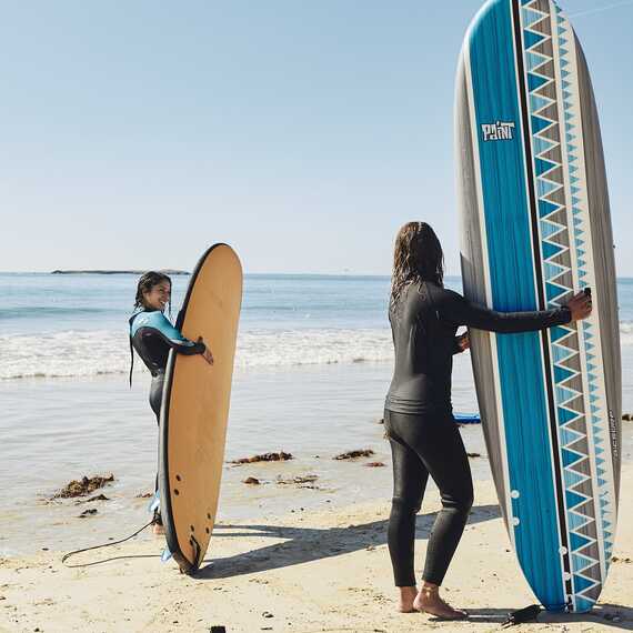 Die Atlantikküste ist perfekt, um sich im Surfen zu versuchen! Auf 10 Kilometern feinem Sandstrand bieten Ihnen die versierten Surflehrer der Ecole de Surf de Bretagne Surfkurse für alle Niveaus an und bringen Ihnen das Surfen an sicheren Orten bei.