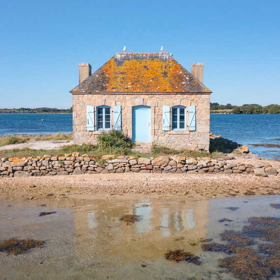 Das jetzt unbewohnte Haus lädt zum Träumen ein und macht Lust, hier einen Sommerurlaub zu verbringen. Sie werden sicherlich einige Maler oder Fotografen treffen, die die Landschaft und die Geschichte dieses kleinen Fleckchens Erde verewigen, das zu einer regelrechten Postkartenidylle der Bretagne geworden ist. Vom Kai aus haben Sie einen tollen Blick, um herrliche Sonnenuntergänge zu genießen.